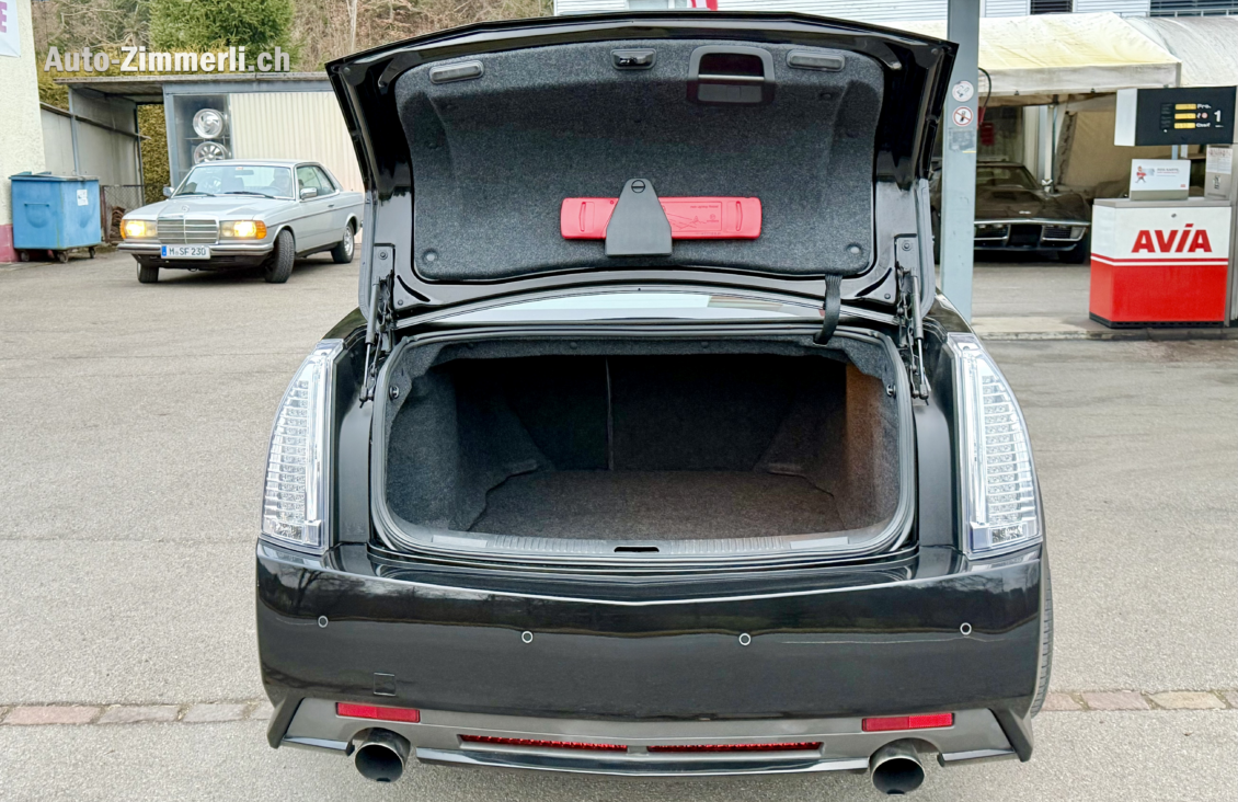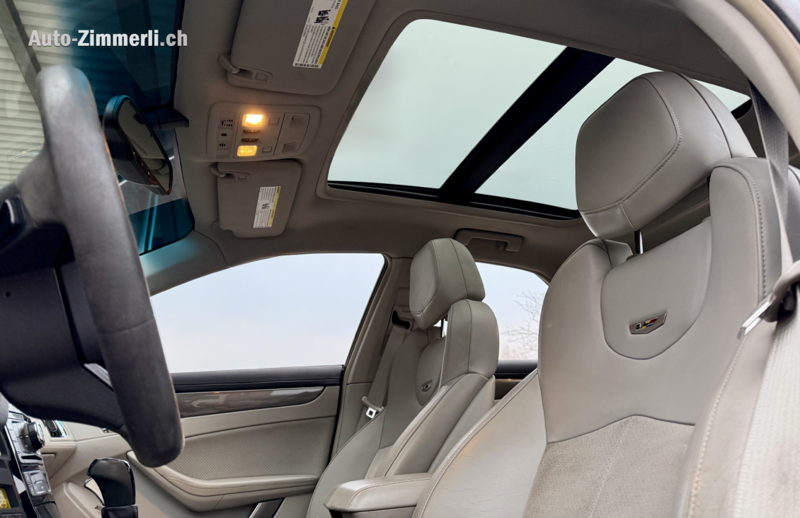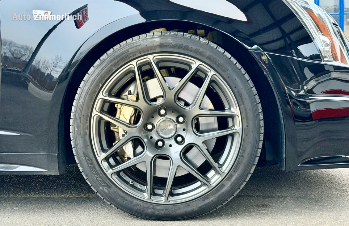 Technisch verfügt das Fahrzeug über einen Hubraum von 6’162 cm³, acht Zylinder in V-Bauweise, Hinterradantrieb und einen durchschnittlichen Verbrauch von 14.4 l/100 km. Die Kraft wird über 19-Zoll ACE MESH-7 D707 Leichtmetallfelgen auf die Strasse gebracht, vorne 8.5 x 19 Zoll mit 285/35ZR19TLXL Azenis FK 510 Falken und hinten 10 x 19 Zoll mit 255/40ZR19TLXL FK 510 Azenis Falken, während Xenon-Scheinwerfer mit Waschanlage, adaptive Lichtsysteme und zahlreiche elektronische Assistenz- und Komfortfunktionen das Gesamtpaket abrunden. Insgesamt ist der Cadillac CTS-V eine seltene Kombination aus amerikanischer Muscle-Car-DNA, moderner Technik und luxuriöser Ausstattung.
