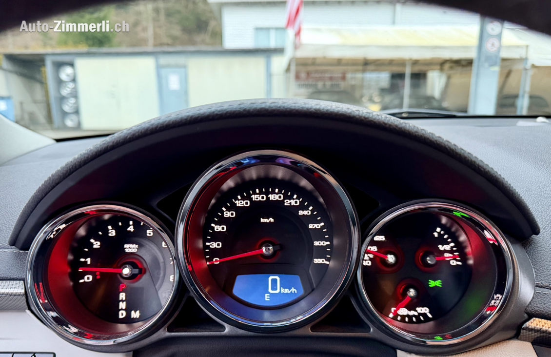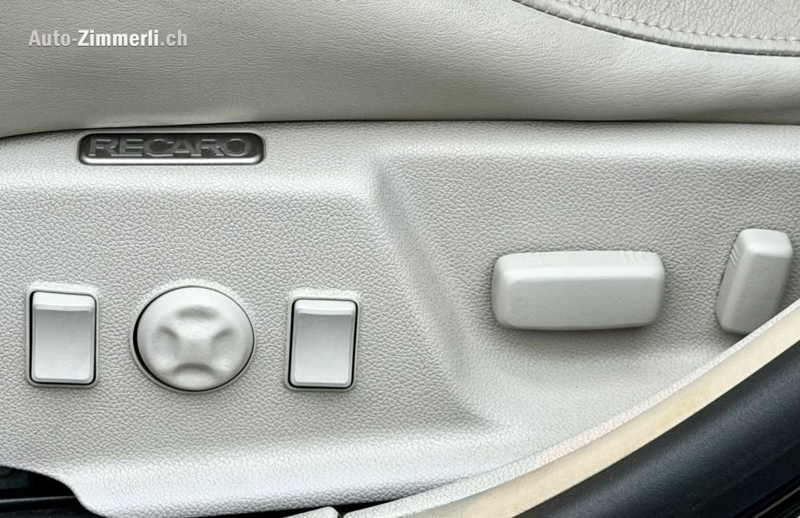 Optisch präsentiert sich das Fahrzeug in elegantem Schwarz mit grauem Innenraum. Hochwertige Recaro-Sportsitze, elektrisch verstellbar, beheizt und belüftet, sorgen ebenso für Komfort wie die 2-Zonen-Klimaautomatik, das Bose Surround Soundsystem, das Navigationssystem mit Festplatte und das multifunktionale Lederlenkrad mit Schaltwippen. Weitere Ausstattungsmerkmale wie Rückfahrkamera, Einparkhilfe hinten, Tempomat, Keyless Entry & Start, elektrische Fensterheber vorne und hinten sowie ein elektrisches Sonnendach unterstreichen den luxuriösen Charakter. Sicherheit wird grossgeschrieben: Zahlreiche Airbags, ABS, ASR, ESP, Bremsassistent, Reifendruckkontrolle, ISOFIX-Vorrichtungen und eine elektronische Wegfahrsperre sind serienmässig an Bord.