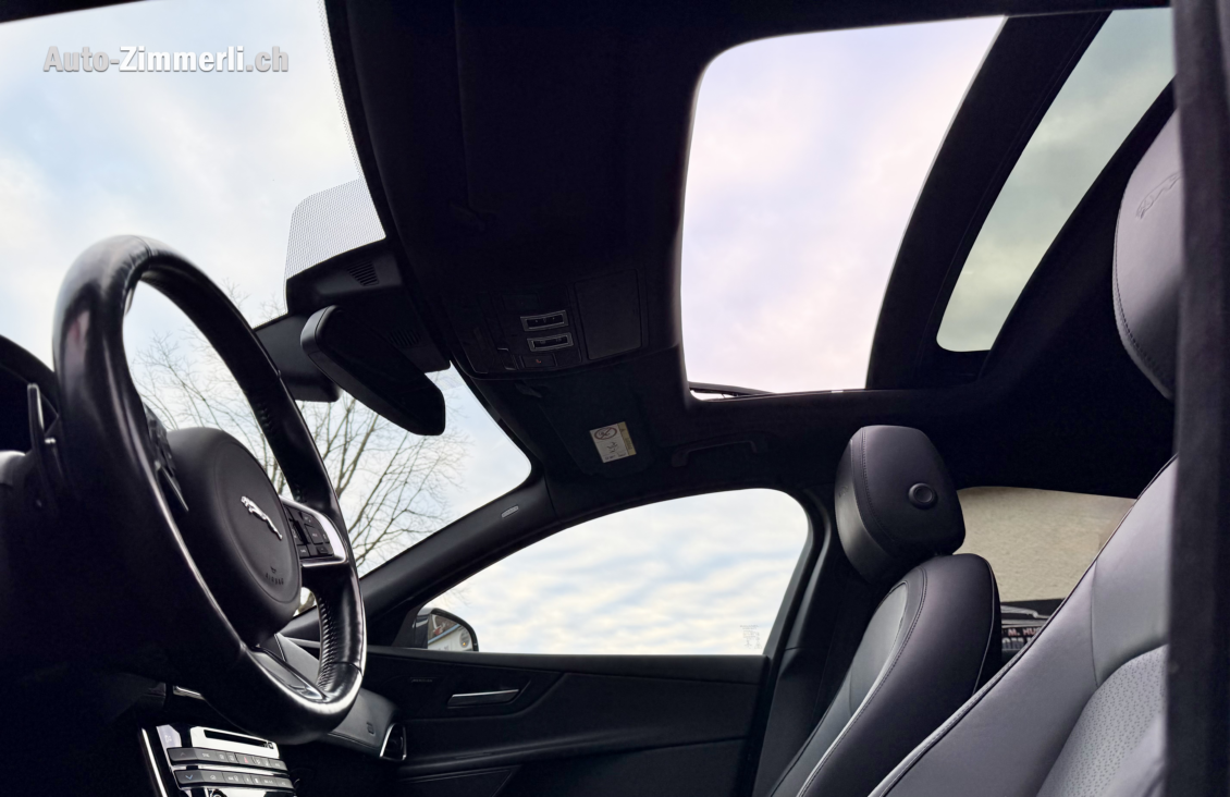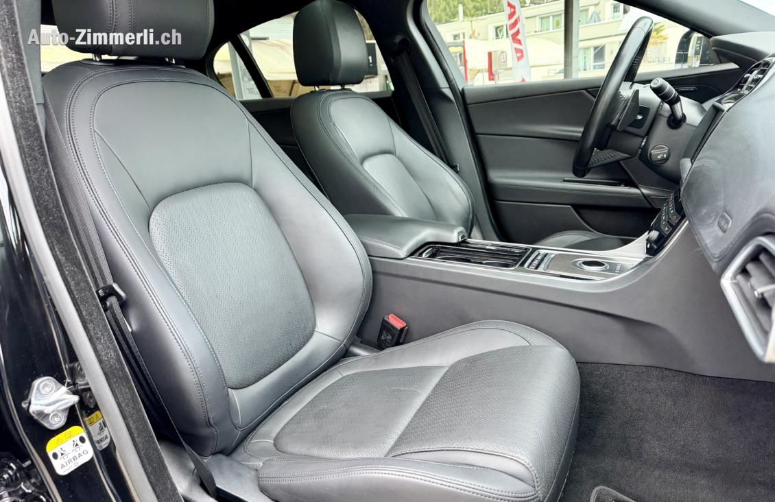 Der Jaguar XE 25t Portfolio AWD aus dem Jahr 2018 präsentiert sich als elegante und sportliche Limousine mit hochwertiger Ausstattung, permanentem Allradantrieb und einem sehr ausgewogenen Verhältnis aus Komfort, Sicherheit und Fahrdynamik. In klassischem Schwarz gehalten, sowohl aussen als auch innen, überzeugt das Fahrzeug mit seinem edlen Auftritt, den 19-Zoll-Leichtmetallfelgen in Schwarz, abgedunkelten Scheiben, Panorama-Glasdach sowie stilvollen Carbon-Applikationen und einem Dachhimmel in Jet-Farbe. Der Innenraum bietet fünf Sitzplätze mit perforierten Ledersitzen, elektrisch verstellbaren Vordersitzen inklusive Sitz- und Lenkradheizung, 2-Zonen-Klimaautomatik, Ambientebeleuchtung und einer umfangreichen Geräusch- und Komfortausstattung. Modernste Assistenzsysteme wie adaptiver Tempomat, Spurhalteassistent, Toter-Winkel-Warnsystem, Parkassistent mit Rückfahrkamera, Berganfahrhilfe, DSC und Torque Vectoring sorgen für ein hohes Mass an Sicherheit und entspanntes Fahren. Das InControl Touch Pro Infotainmentsystem mit Navigation, Jaguar Voice, DAB-Radio, Bluetooth sowie dem 825-W-Meridian-Surround-Soundsystem bietet erstklassige Konnektivität und Klangqualität. Praktische Details wie Keyless Entry und Start, elektrische Heckklappe, ISOFIX, dreigeteilte Rücksitzbank, zahlreiche Ablagen, elektrische Fensterheber, Smart Key und umfassende Licht- und Sichtpakete unterstreichen den hohen Alltagsnutzen. Technisch basiert die Limousine auf einer viertürigen Karosserie mit einer Länge von 4’686 mm, einer Breite von 1’850 mm und einer Höhe von 1’425 mm, bei einem Leergewicht von 1’585 kg, einem Gesamtgewicht von 2’120 kg und einer Nutzlast von 535 kg, die theoretische Anhängelast gebremst beträgt 1’800 kg. Der Neupreis lag bei CHF 82’200, das Fahrzeug entspricht der Euro-6b-Norm, erreicht einen durchschnittlichen Verbrauch von 6.7 l/100 km bei CO?-Emissionen von 153 g/km und einer Energieeffizienzklasse F. Angetrieben wird der Jaguar von einem 2.0-Liter-Reihenvierzylinder-Benzinmotor mit 1’999 cm³ Hubraum, kombiniert mit einem 8-Gang-Automatikgetriebe und einer Leistung von 250 PS (184 kW).