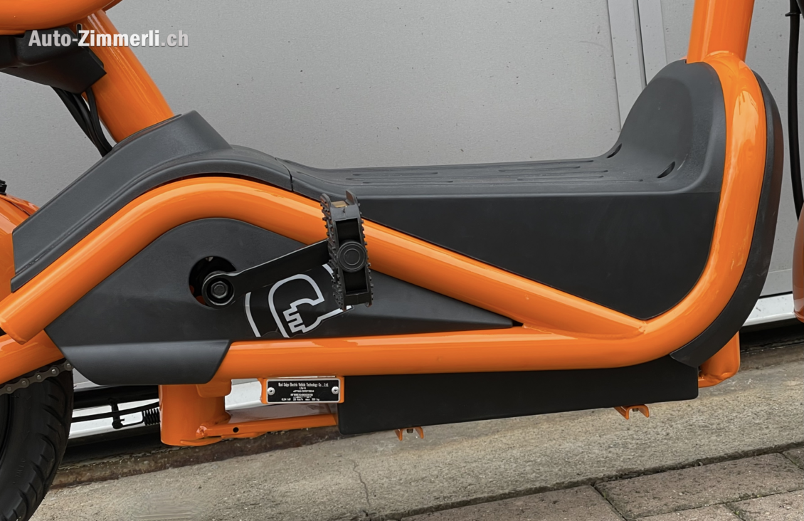 In Bezug auf die Fahreigenschaften ist es eine sehr kompakte Maschine mit ausgezeichnetem Drehmoment. Dank der größeren Räder und sehr präziser Stoßdämpfer hat es keine Probleme damit, im Gelände und auf unbefestigten Straßen zu fahren. Darüber hinaus ist es mit klassischen Pedalen zum Treten ausgestattet. Obwohl das Gesamtgewicht 54 kg beträgt, ist das Treten nicht anstrengend und es ist nicht erforderlich, ein geübter Radfahrer zu sein, außerdem wird es nur im Notfall zum Treten verwendet.