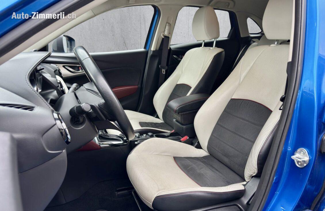 Zur optionalen Ausstattung zählen unter anderem eine Mica- oder Metallic-Lackierung, ein integriertes Navigationssystem, Teilledersitze sowie standardisierte Teppichfussmatten mit Logo. Serienmässig bietet der Mazda CX-3 eine umfangreiche Ausstattung, die sowohl Komfort als auch Sicherheit und moderne Technologie umfasst. Dazu gehören unter anderem ein Audiosystem mit sieben Lautsprechern, ein Bose Premium Soundsystem, Bluetooth-Schnittstelle, digitaler Radioempfang über DAB/DAB+, ein Head-Up Display sowie ein Touchscreen mit USB- und AUX-Anschluss. Ergänzt wird dies durch einen Radio/CD-Player mit MP3-Funktion.