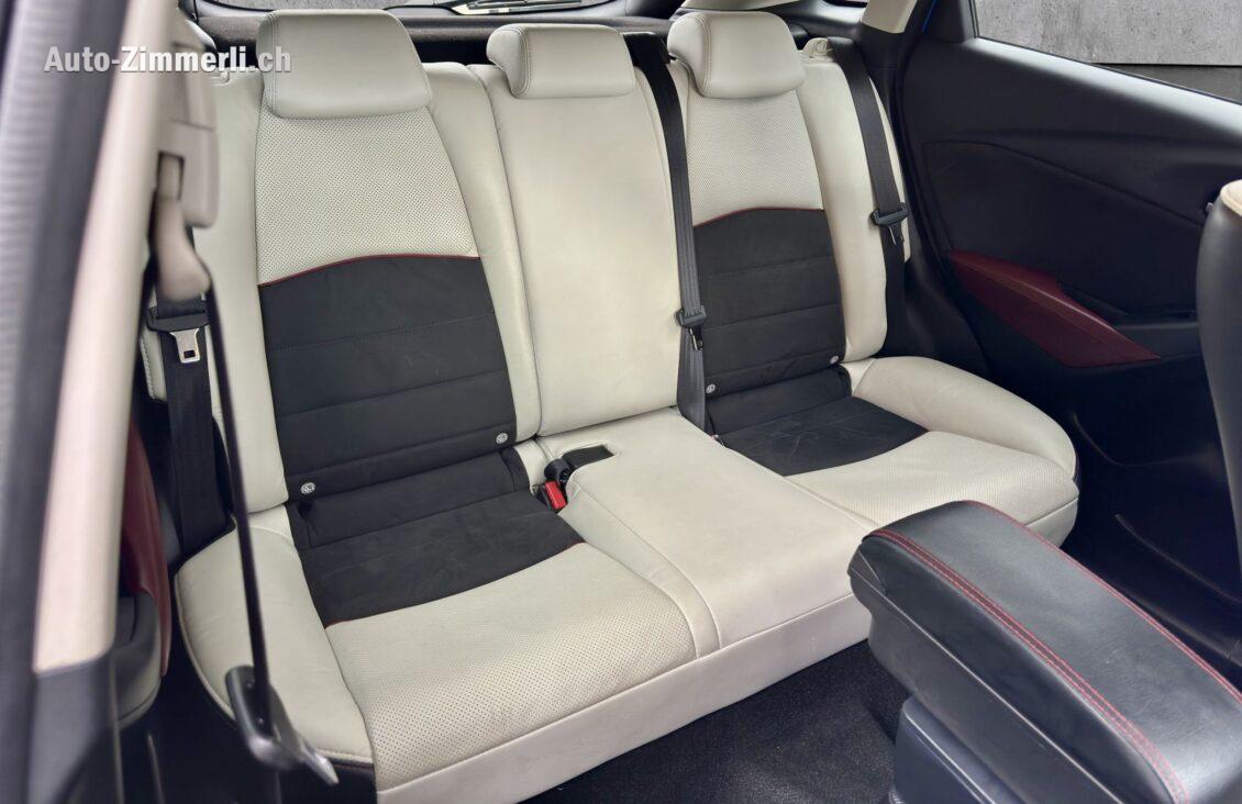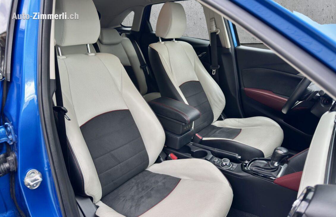 Der Mazda CX-3 2.0 Revolution FWD Skyactiv Drive ist ein kompakter SUV beziehungsweise Geländewagen aus dem Jahr 2017, der mit einem 2.0-Liter Skyactiv-Benzinmotor ausgestattet ist. Das Fahrzeug leistet 120 PS beziehungsweise 88 kW und verfügt über einen Vorderradantrieb in Kombination mit einem 6-Stufen-Automatikgetriebe. Der Motor hat einen Hubraum von 1’998 cm³, arbeitet mit vier Zylindern in Reihenbauweise und erfüllt die Euro-6b-Abgasnorm. Der kombinierte Verbrauch liegt bei 5.8 Litern auf 100 Kilometer, wobei im Stadtverkehr 7.3 Liter und ausserorts 4.9 Liter verbraucht werden. Das Fahrzeug ist der Energieeffizienzklasse D zugeordnet.