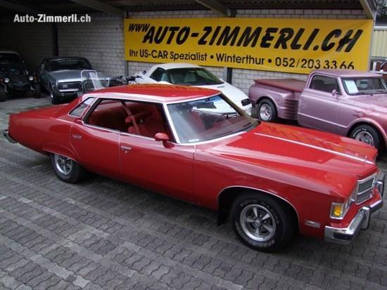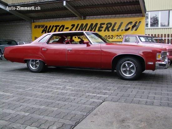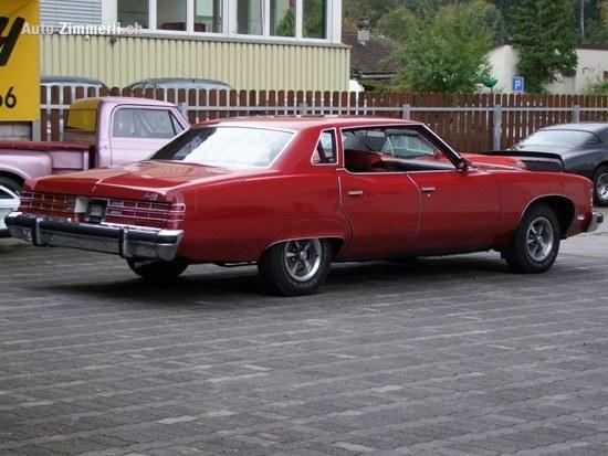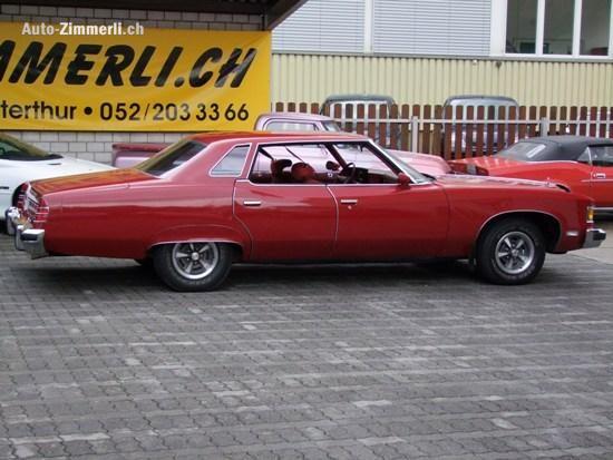 PONTIAC Grand Ville Brougham Sedan 400er V8, Automat, 6 Sitzplätze, Luxuriöses Velour Interieur, Klimaanlage, 15″ Pontiac Sport Rally Wheels mit Rally Beschriftung, el. Fenster vorn und hinten, Servolenkung, el. Sitzverstellung, 4 türige Limousine mit Pfostenloser Karosserie, breite C Säule mit integriertem Fenster, 2 x 3er Sitzbänke, schöne Holzapplikationen, von innen verstellbare Spiegel, abklappbare Mittelarmlehnen, Automatikwählhebel am höhenverstellbarem Lenkrad, JVC Radio CD Player, Kühlerfigur, hinten und vorne verchromte Stossstangen, Doppelscheinwerfer, in Wagenfarbe lackierten Spiegel, die hinteren Radabdeckungen sind abnehmbar, Heckscheibenheizung, Typenschein X, Heckantrieb, dieser 75er Grand Ville ist der letzte Jahrgang dieser grossformatigen full-size Baureihe, Leergewicht 2230 Kg, Big Block Motor mit 6558 ccm Hubraum und 200 PS.