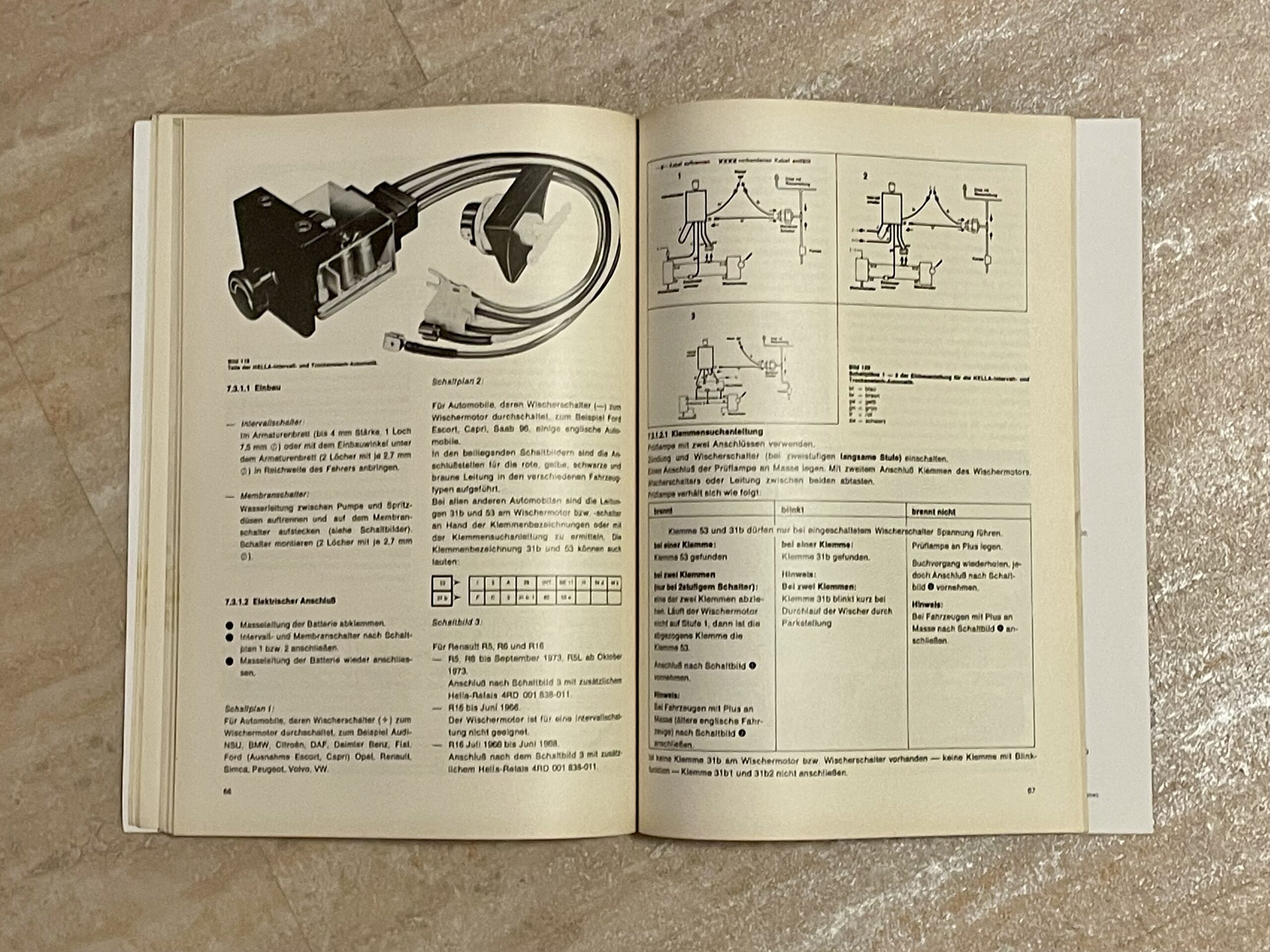 Einbau von zusätzlichen Elektrogeräten für Automobile. Voraussetzungen für den Einbau, Zusätzliche Beleuchtungseinrichtungen, Zusätzliche Warneinrichtungen, Zusätzliche Kontrollgeräte, Drehzahlmesser, Fernthermometer, Lichtmaschinen-Kontrollgeräte, Scheibenwischer-Intervallschalter, Wisch-Wasch-Anlagen für Windschutzscheiben, Scheinwerferreinigung, Heckscheibenheizung, Elektronische Zündanlagen, mit detailierten Anleitungen und 161 Abbildungen.